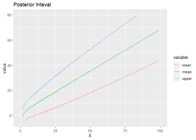 labs(title="Posterior Inteval")+ylim(c(-5, 80))+xlim(c(0, 100))