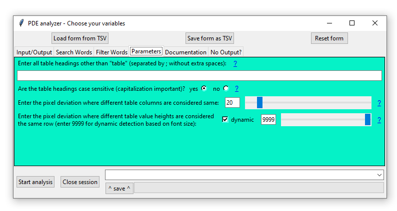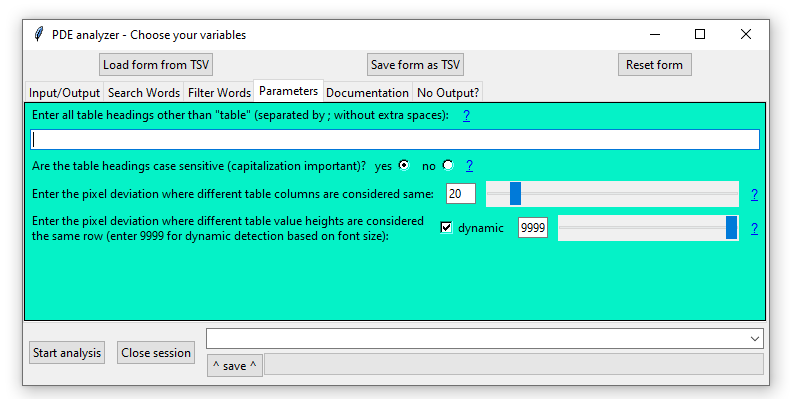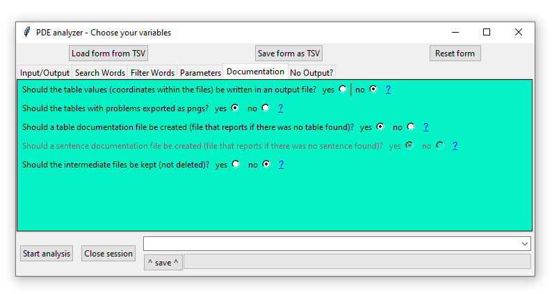 1. Load form from tsv OR Save form as tsv: The filled form can and should be saved as a TSV file at any time, accordingly the saved parameters can be loaded from saved TSV files.