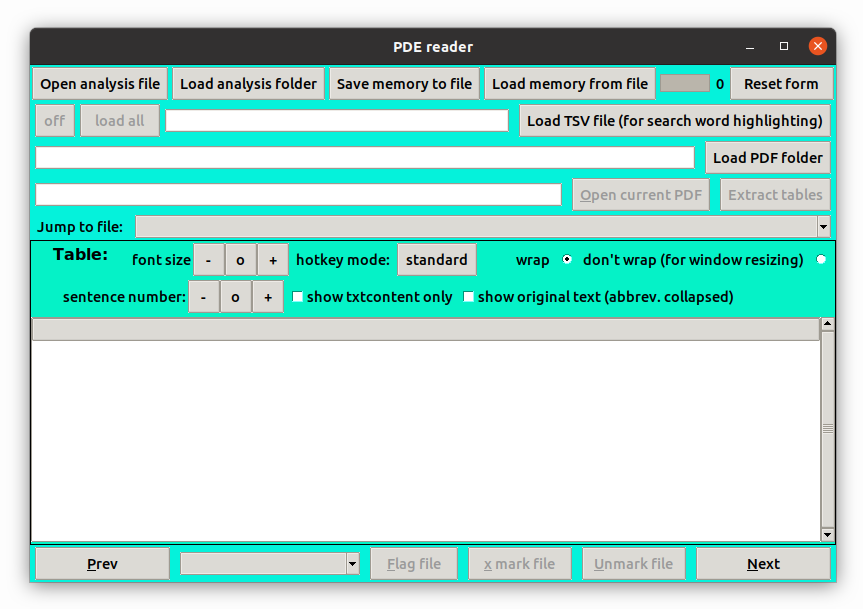 PDE_reader_i() user interface - Table display with one sentence before and after less