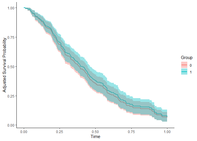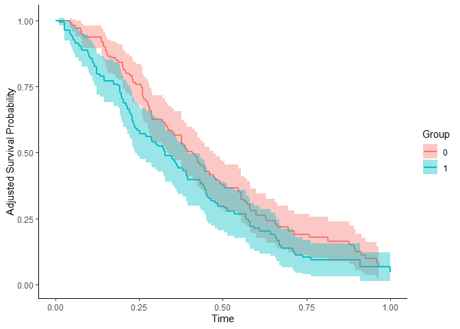 #> Test of the Difference between two adjusted Survival Curves