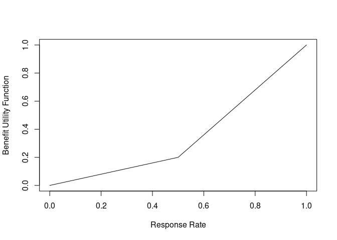 curve(benefit_fun, xlab = "Response Rate", ylab = "Benefit Utility Function")