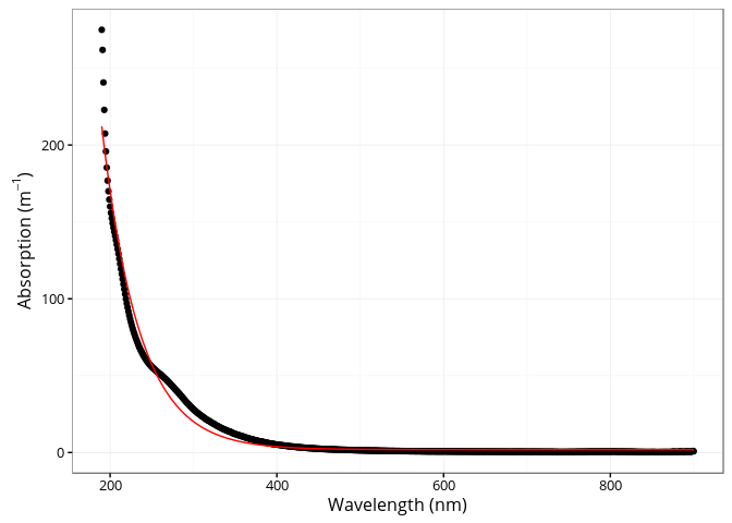fit <- cdom_fit_exponential(wl = spectra$wavelength,