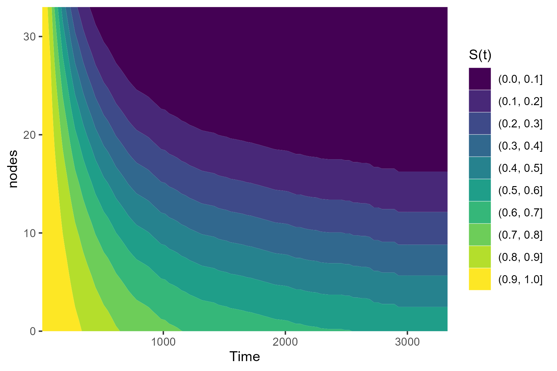 install.packages("contsurvplot")Alternatively, the development version can be installed using the
