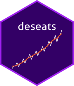 The goal of deseats is to provide several methods to decompose seasonal time series. Among them is a new fully data-driven algorithm called DeSeaTS (deseasonalize time series) for locally weighted regression with an automatically selected bandwidth. DeSeaTS accounts for possible short-range dependence in the underlying error process. Furthermore, the base model of the BV4.1 (Berlin Procedure 4.1) can be considered as well. Permission to include the BV4.1 base model procedure was kindly provided by the Federal Statistical Office of Germany.