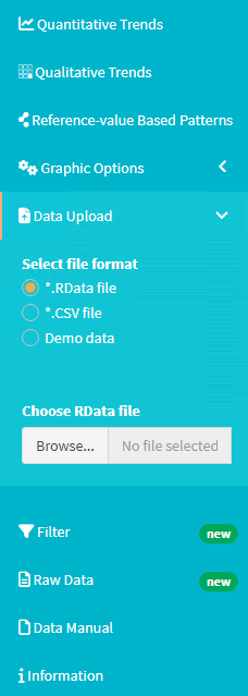 This data set can then be loaded within the elaborator using the “Data Upload” functionality in the main menu on the left side of the application: