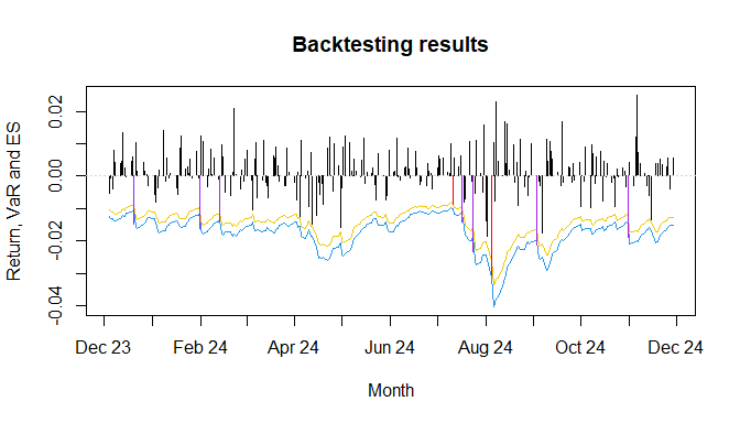 Ultimately, the package is also capable of computing loss functions based on VaR and ES. For detailed description of those loss functions, see the manual of the package.