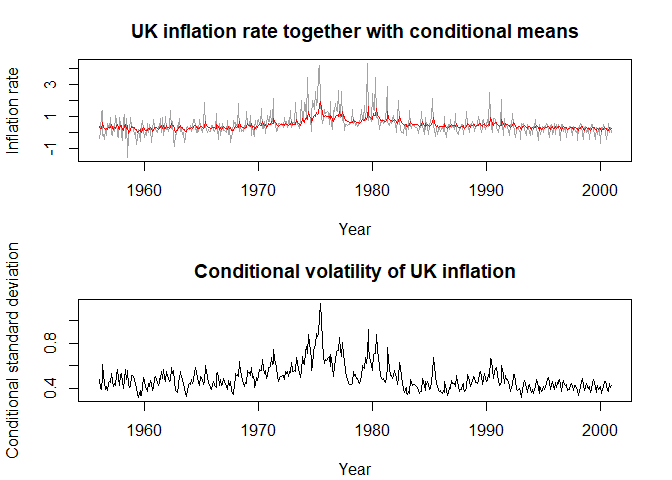 The package contains an example time series SP500, namely the Standard and Poor’s 500 daily log-return series from January 04, 2000, until November 30, 2024, obtained from Yahoo Finance. The series is formatted as a time series object of class "zoo". Furthermore, it contains the dataset UKinflation with the monthly inflation rate of the UK from January 1956 to December 2000. This second series is formatted as a time series of class "ts".
