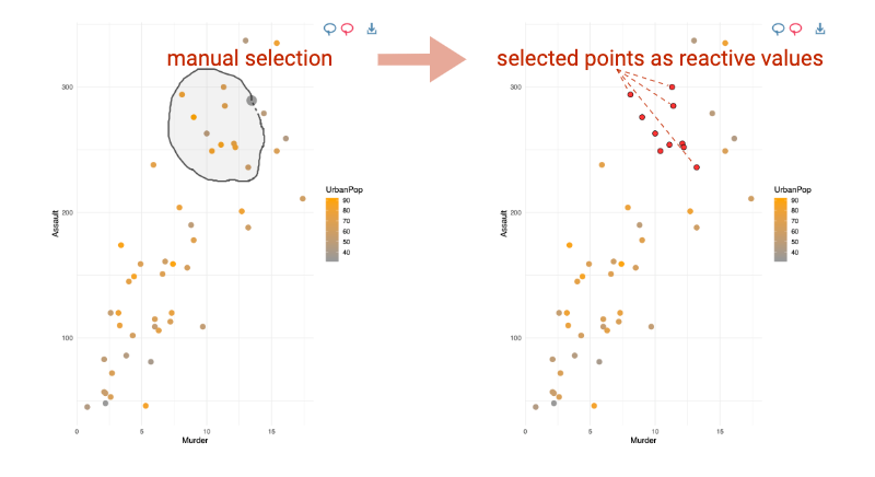 Under the hood, {ggiraph} is an htmlwidget and a ggplot2 extension. It allows graphics to be interactive, by exporting them as SVG documents and using special attributes on the various elements.