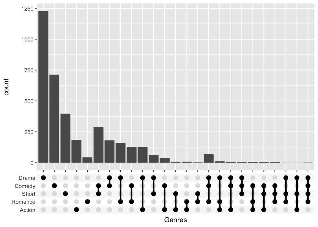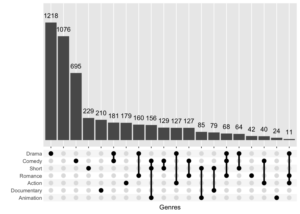 axis_combmatrix(sep = "-", levels = c("Drama", "Comedy", "Short",