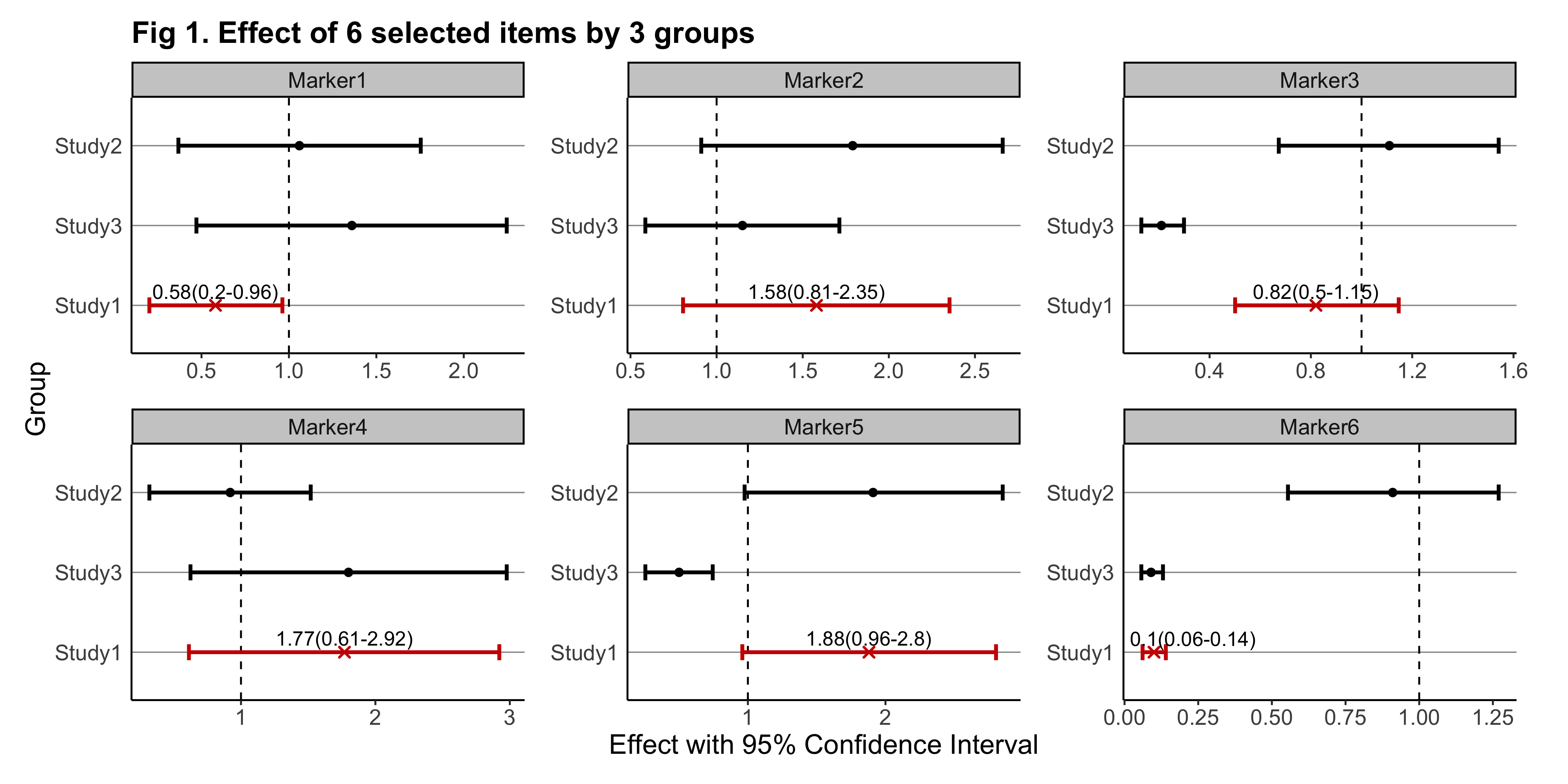 eg_returnList = gwasforest(eg_customFilename, stdColnames = TRUE, valueFormat = "Effect", metaStudy = "Study1", colorMode = "duo")