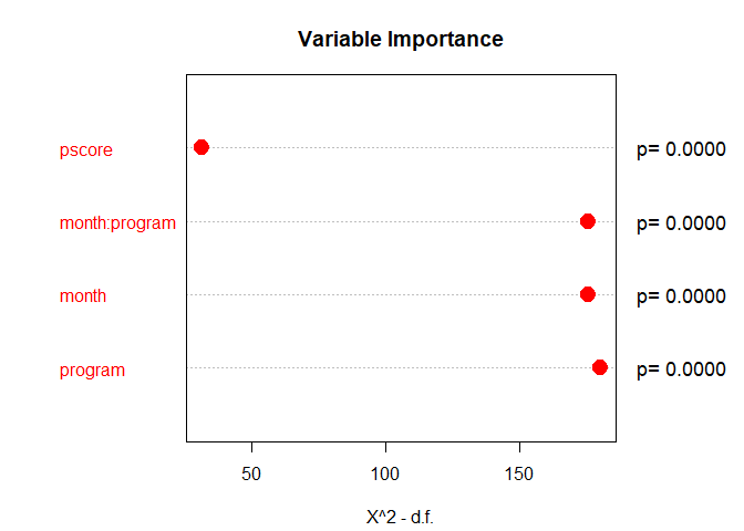 im22 <- assess(formula=los ~ ., data=hosprog, intervention = "program",