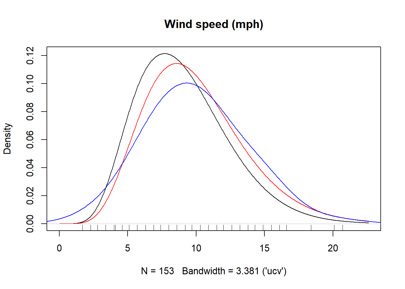 plot(kde, main = "Wind speed (mph)")