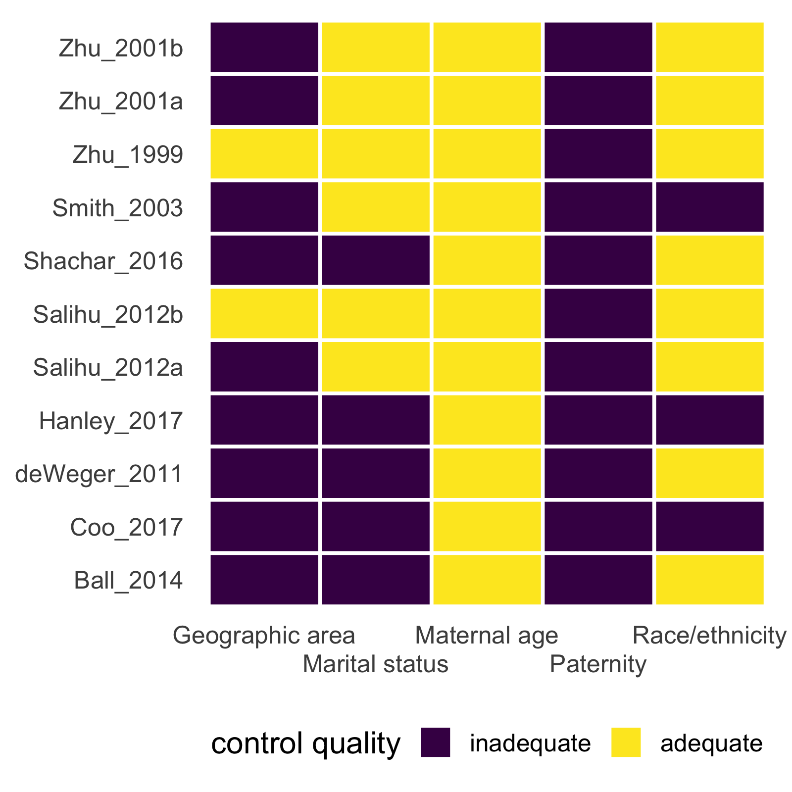#>  2 Sociodemographics Maternal age Y             Zhu_2001b    adequate