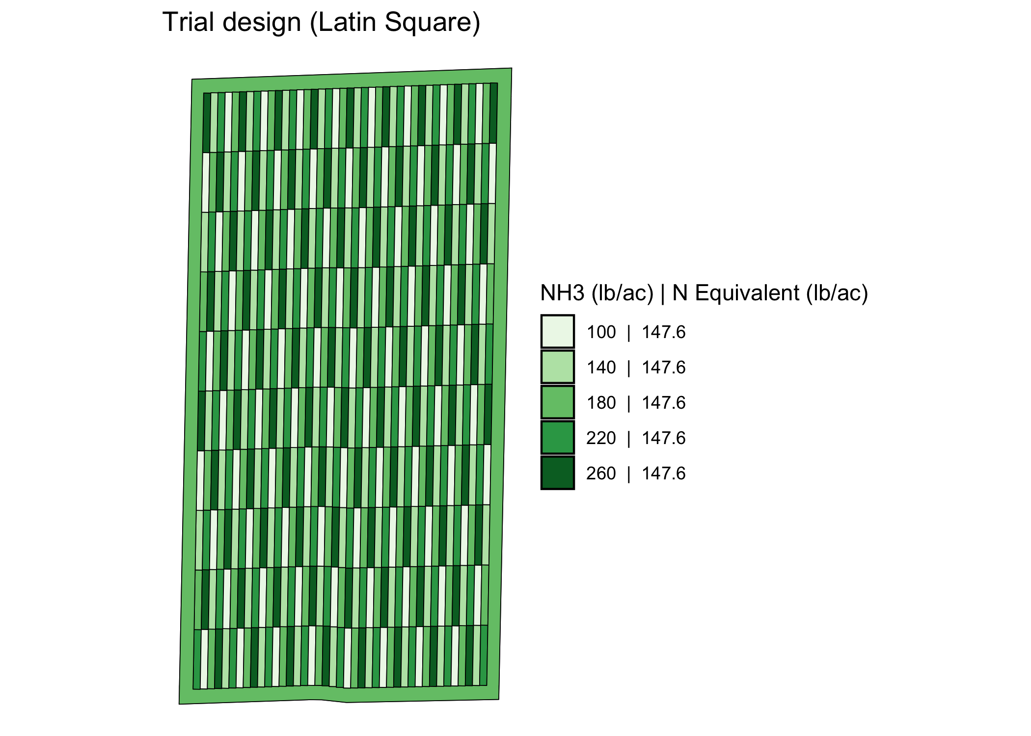 Here, we demonstrate how to use the ofpetrial package to create a single-input on-farm experiment trial design (more detailed instructions on the basic workflow is provided in this article).