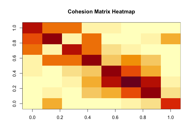 image(t(apply(C, 2, rev)), main = "Cohesion Matrix Heatmap")