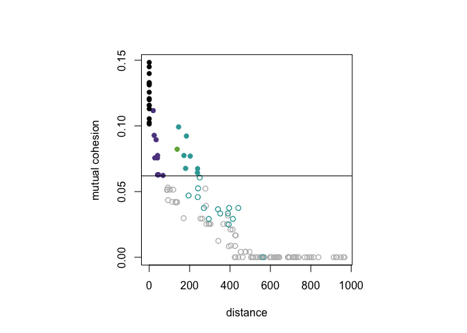 dist_cohesion_plot(D, cex = .8, weak_gray = TRUE)
