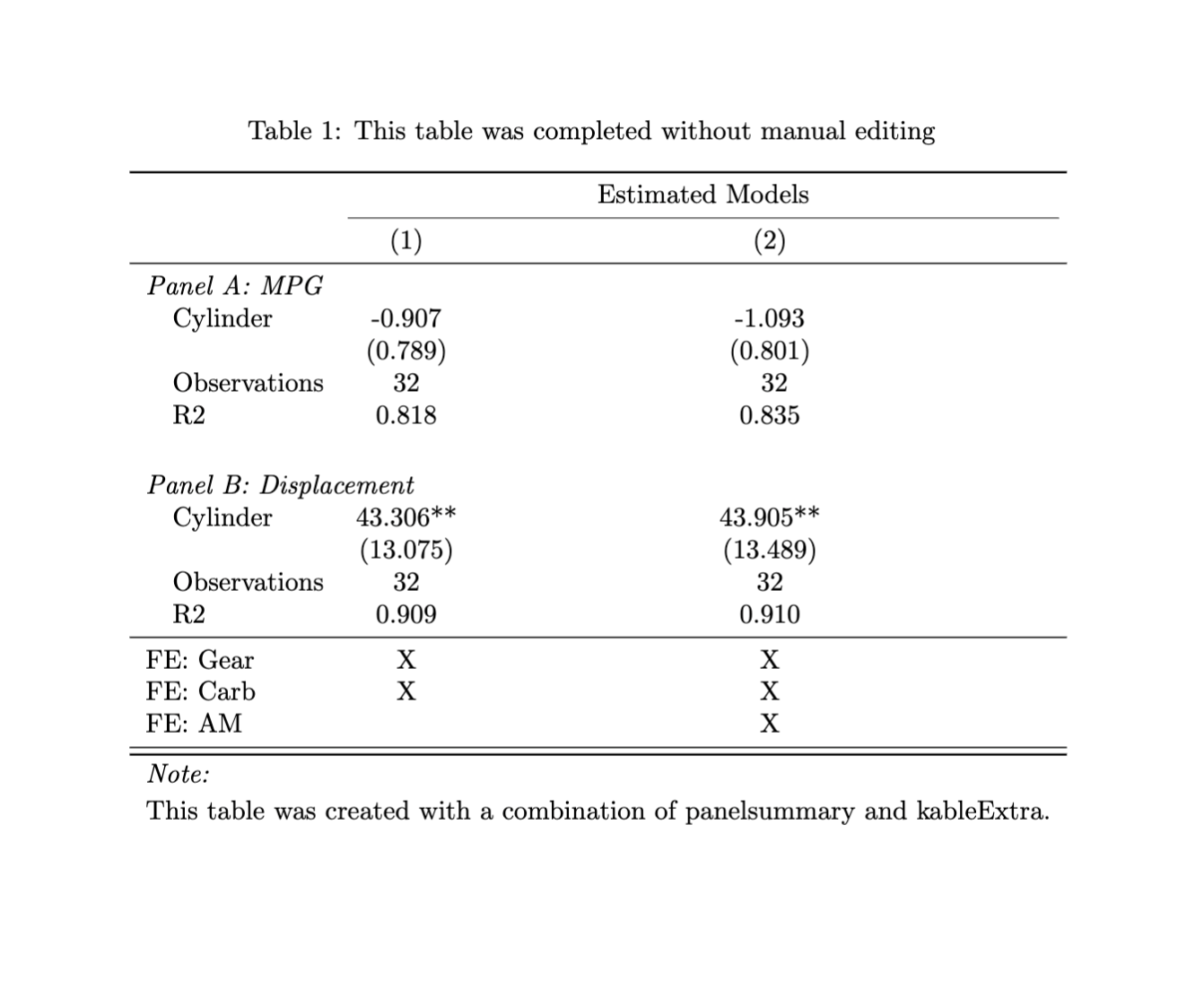 devtools::install_github("michaeltopper1/panelsummary")panelsummary can easily create beautiful paneled tables