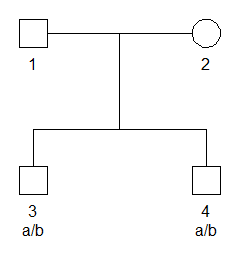 The output confirms the intuitive result that the parents cannot both be homozygous for the same allele. The most likely combination is that one parent is heterozygous a/b, while the other is homozygous b/b.