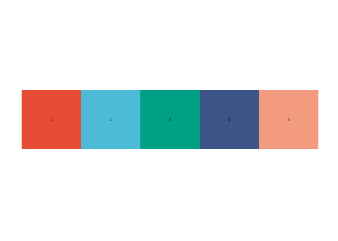 ggsci package presetssci_colors("npg", 5) %>% plot_colors()