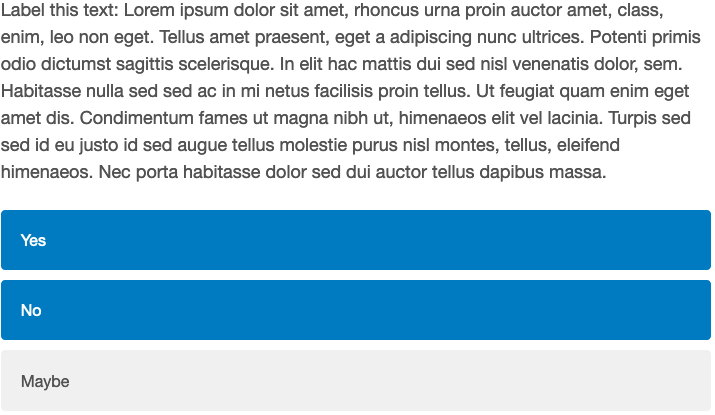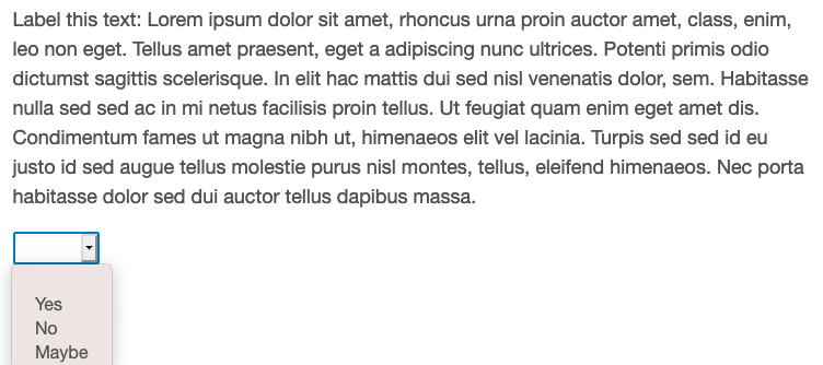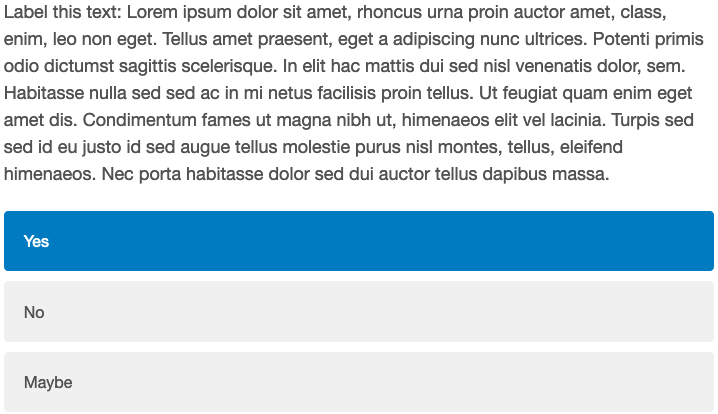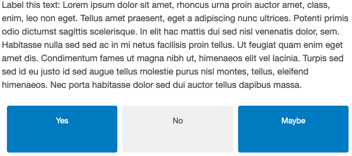 There are several options for question types for text labelling tasks. The first group allow the user to select from a set of options (e.g., “Yes/No/Maybe”), and allow respondents to select either one or multiple answers depending on whether we specify e.g., “select” or “multiselect” as our question_type argument.