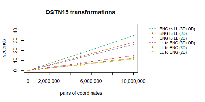 The goal of sgo is to provide a set of methods to transform ETRS89 coordinates to the equivalent OSGB36 National Grid coordinates, and vice-versa, using the Ordnance Survey’s National Grid Transformation Model OSTN15. Additionally, it also has the ability to calculate distances and areas from groups of points defined in any of the coordinate systems supported.