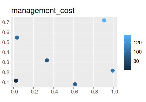 geom_sf(aes(color = management_cost), size = 4) +