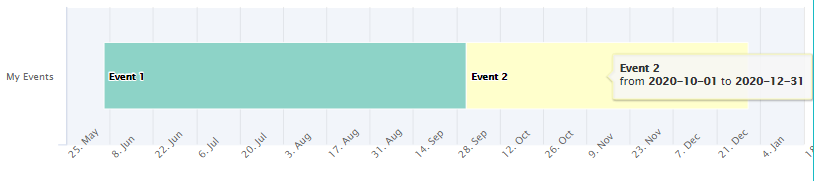 #> 2 Event 2 2020-10-01 2020-12-31 My Events from <b>2020-10-01</b> to <b>2020-12-31</b> #FFFFB3 1 1