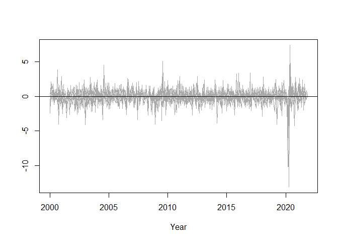 wex is an R package designed to compute the exact observation weights for the Kalman filter and smoother using the method described in Koopman and Harvey (2003). It offers an in-depth exploration of state-space models, enabling researchers and practitioners to extract valuable insights from their time series data. This functionality is particularly useful in dynamic factor models, where the weights can be employed to decompose the contributions of individual variables to the latent factors (see Example 2 below).