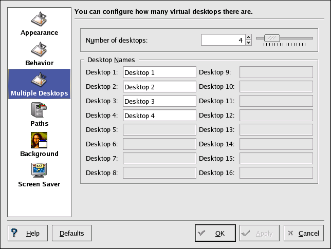 You can also change the number of desktops available to you by adjusting the slider in the Number of Desktops. For more desktops, drag the bar to the right; for fewer desktops, drag the bar to the left.