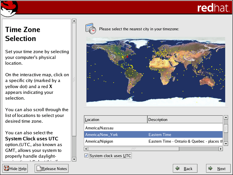 You can also scroll through the list at the bottom of the screen to select your time zone. Using your mouse, click on a location to highlight your selection.