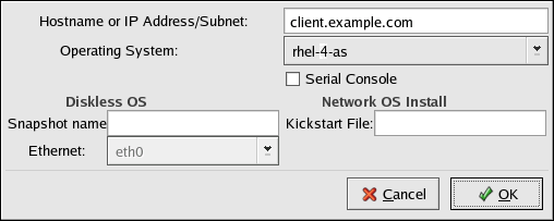 Ignore the Snapshot name and Ethernet options. They are only used for diskless environments. For more information on configuring a diskless environment, refer to Chapter 4 Diskless Environments for details.