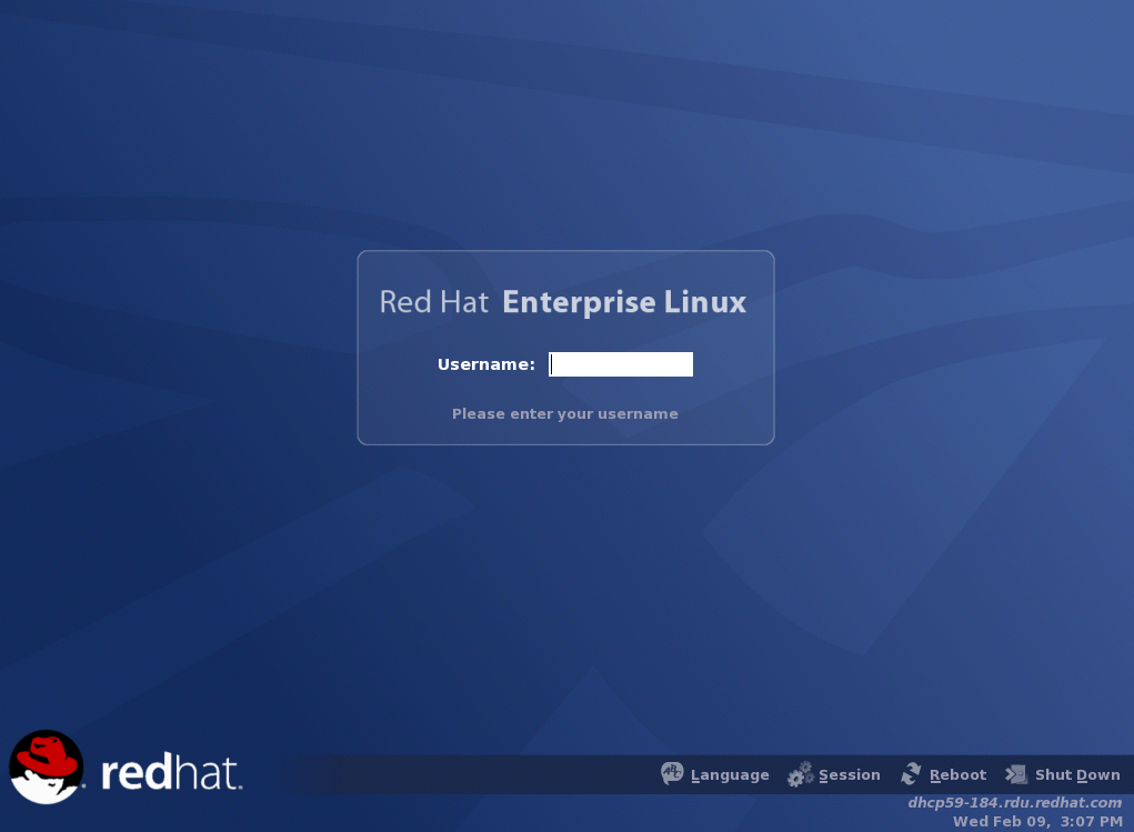 The next step to using your Red Hat Enterprise Linux system is to log in. When you log in, you are introducing yourself to the system (also called authentication). If you type the wrong user name or password, you will not be allowed access to your system.